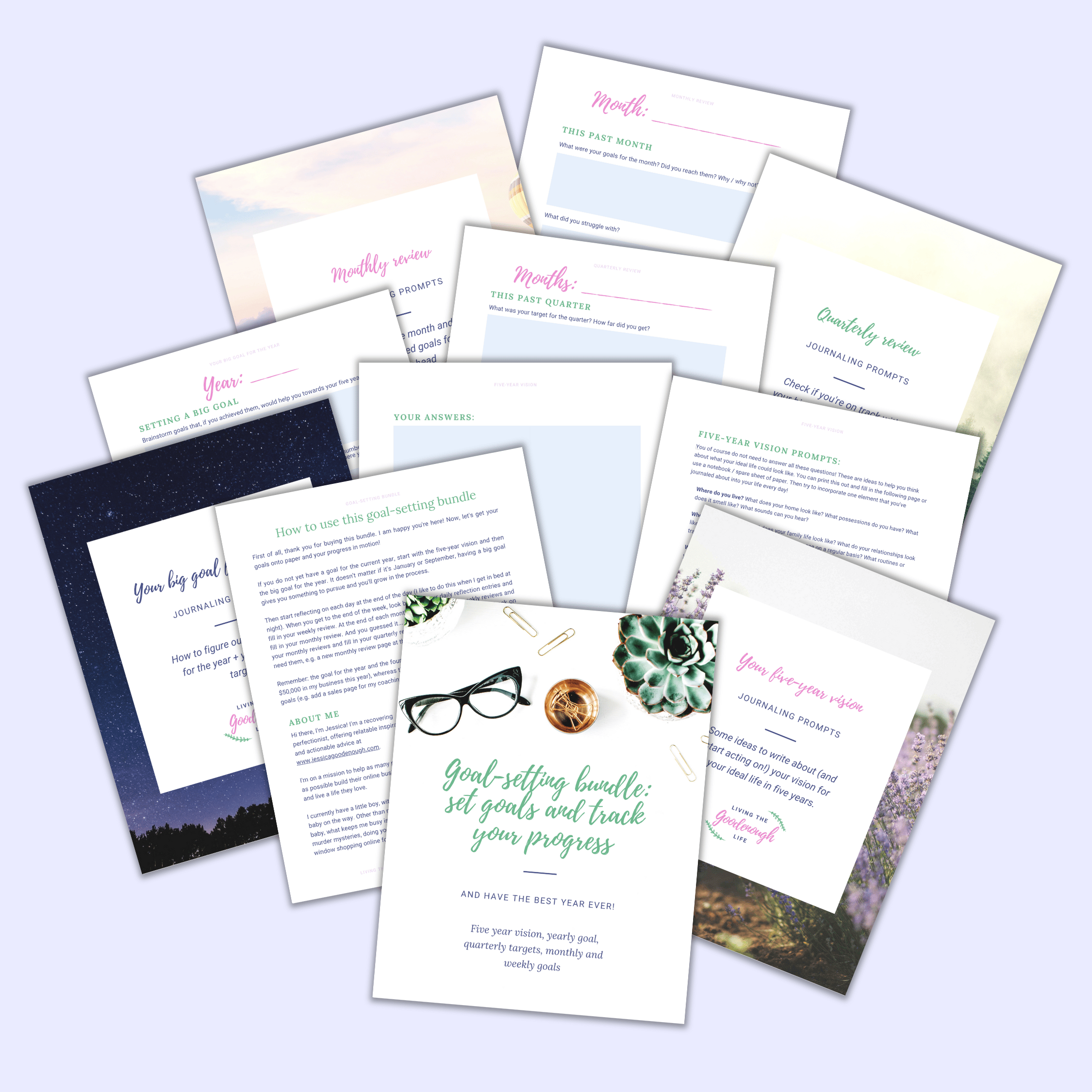This goal-setting bundle includes how to create your five-year vision, yearly goal, quarterly targets, monthly and weekly goals.